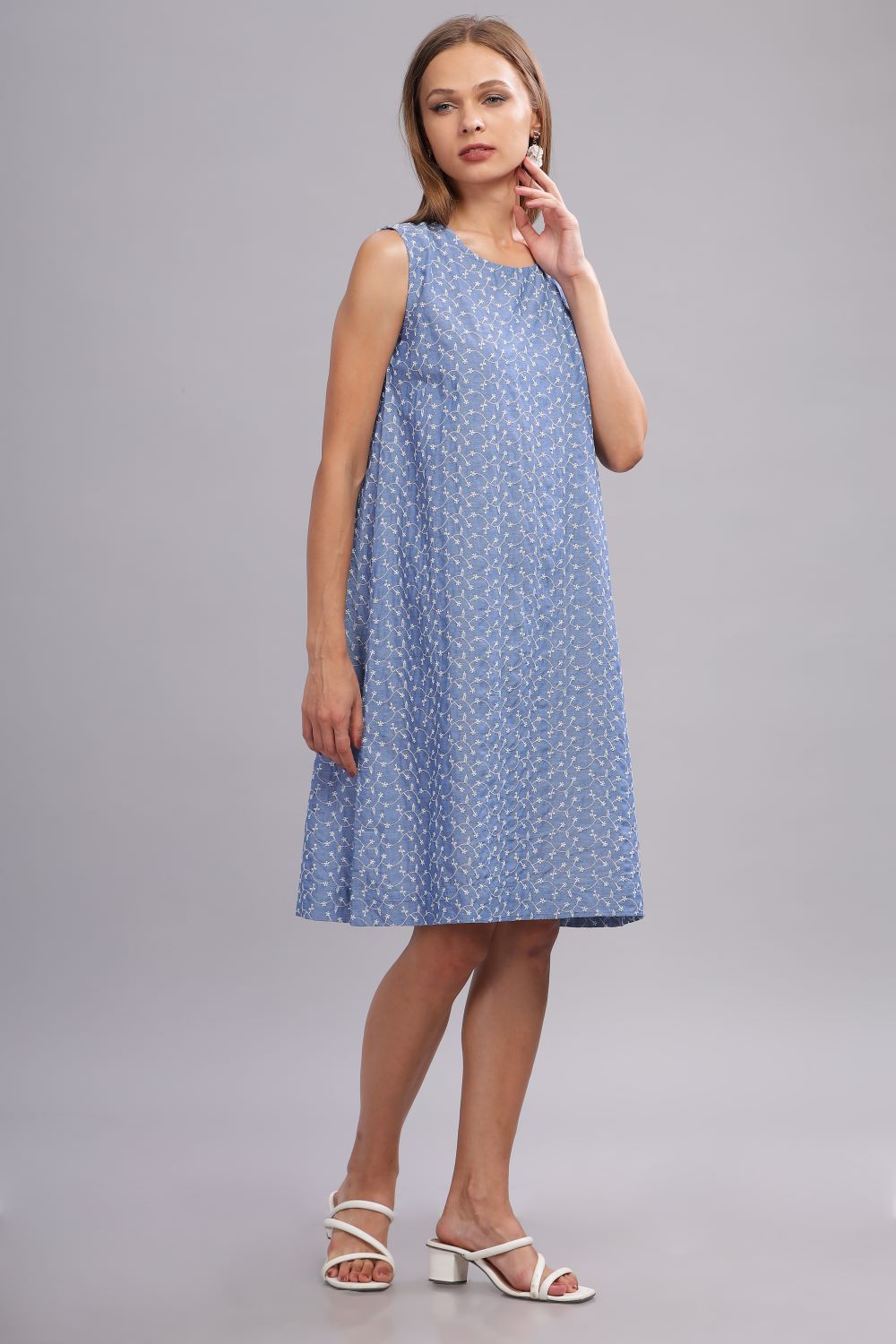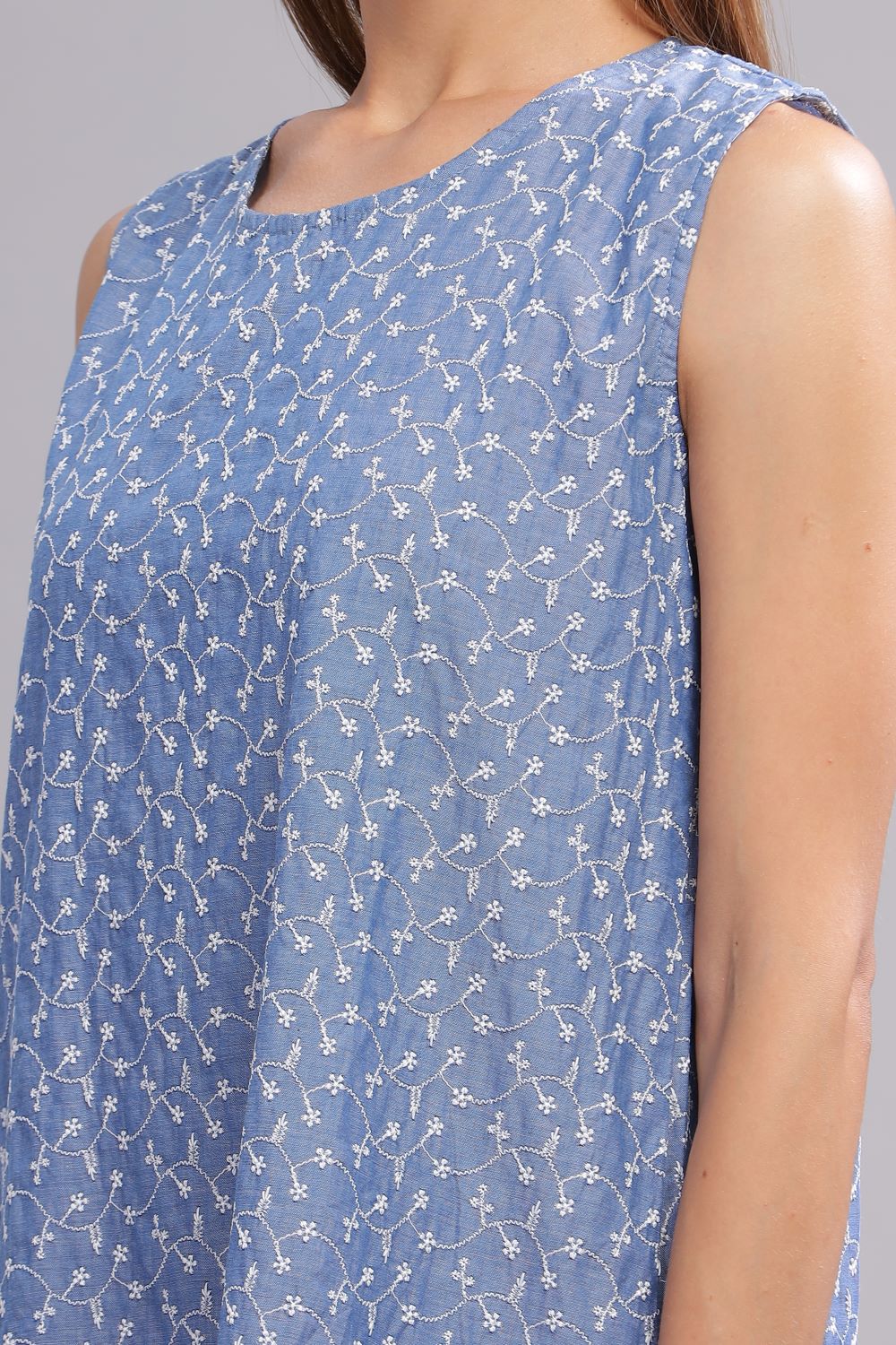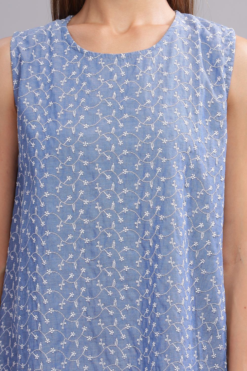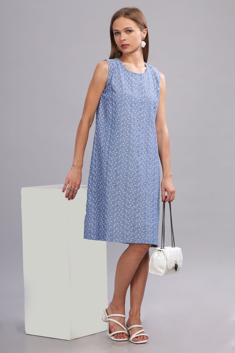 Made with high-quality cotton fabric, this Powder Blue Embroidery Dress is a versatile addition to any wardrobe. The sleeveless design and knee length make it perfect for both formal and casual wear. Plus, the intricate embroidery adds a touch of elegance. Add a blazer for a polished look.